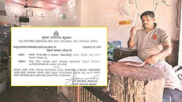 ಈ ಕುರಿತು ಮಾಧ್ಯಮ ಪ್ರಕಟಣೆ ಹೊರಡಿಸಿರುವ ಜಿಬಿಎ ಪಶುಪಾಲನೆ ವಿಭಾಗದ ಉಪ ನಿರ್ದೇಶಕರು, ಭಾನುವಾರದಂದು (ಫೆ.15) ಮಹಾ ಶಿವರಾತ್ರಿ ಹಬ್ಬದ ಪ್ರಯುಕ್ತ ಗ್ರೇಟರ್ ಬೆಂಗಳೂರು ಪ್ರಾಧಿಕಾರ ವ್ಯಾಪ್ತಿಯ ಕಸಾಯಿಖಾನೆಯಲ್ಲಿ ಪ್ರಾಣಿವಧೆ ಹಾಗೂ ಮಾರಾಟ ಮಳಿಗೆಗಳಲ್ಲಿ ಮಾಂಸ ಮಾರಾಟವನ್ನು ಸಂಪೂರ್ಣವಾಗಿ ನಿಷೇಧಿಸಲಾಗಿದೆ ಎಂದು ತಿಳಿಸಿದ್ದಾರೆ.