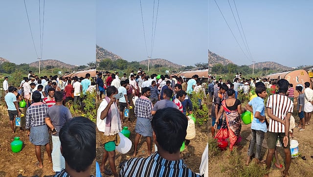 ಸೋರಿಕೆಯಾದ ಆಯಿಲ್ ಸಂಗ್ರಹಕ್ಕೆ ಜನರ ಮುಗಿಬಿದ್ದಾಟ
