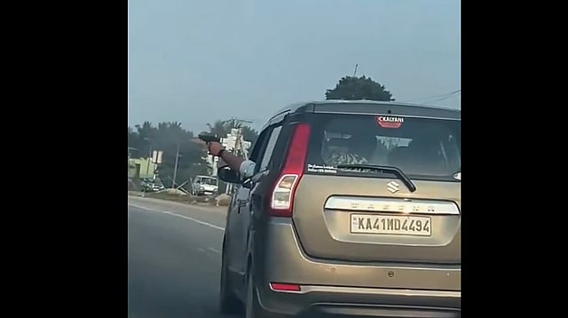 ಬೆಂಗಳೂರು: ಕಾರಿನೊಳಗೆ ಕುಳಿತು ವ್ಯಕ್ತಿಯೊಬ್ಬ ಗನ್ ಪ್ರದರ್ಶಿಸಿ ಸಾರ್ವಜನಿಕರಲ್ಲಿ ಆತಂಕ ಸೃಷ್ಟಿಸಿದ ಘಟನೆಯೊಂದು ಬೆಂಗಳೂರು–ಮಂಗಳೂರು ರಾಷ್ಟ್ರೀಯ ಹೆದ್ದಾರಿಯಲ್ಲಿ ನಡೆದಿದೆ.