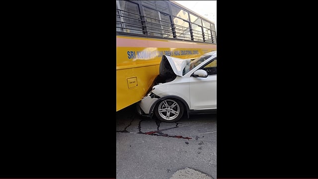 ಬಸ್ನ ಮಧ್ಯೆ ಭಾಗಕ್ಕೆ ಕಾರು ಡಿಕ್ಕಿಯಾಗಿದ್ದು, ಪರಿಣಾಮ ಕಾರಿನ ಮುಂಭಾಗ ಸಂಪೂರ್ಣ ಜಖಂ ಆಗಿದೆ. ಅಲ್ಲದೆ, ಬಸ್'ಗೂ ಹಾನಿಯಾಗಿದೆ. ಅದೃಷ್ಟವಶಾತ್ ಯಾವುದೇ ಪ್ರಾಣಾಪಾಯ ಸಂಭವಿಸಿಲ್ಲ.