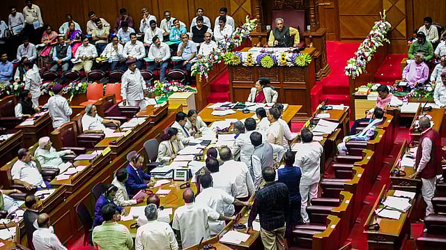 ಬೆಂಗಳೂರು: ಕಾಂಗ್ರೆಸ್ ಪಕ್ಷದ ಕಚೇರಿಗಳಿಗಾಗಿ ಅತಿ ಕಡಿಮೆ ದರದಲ್ಲಿ ಜಾಗಗಳನ್ನು ನೀಡಲಾಗಿದೆ ಎಂದು ಬಿಜೆಪಿ ಆರೋಪಿಸಿದ ಹಿನ್ನೆಲೆಯಲ್ಲಿ ವಿಧಾನ ಪರಿಷತ್ತಿನಲ್ಲಿ ಆಡಳಿತ ಮತ್ತು ವಿಪಕ್ಷಗಳ ನಡುವೆ ಗದ್ದಲ, ಕೋಲಾಹಲ ಉಂಟಾಯಿತು.