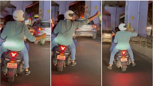 ಈ ಕುರಿತ ವೀಡಿಯೋವೊಂದು ಸಾಮಾಜಿಕ ಜಾಲತಾಣಗಳಲ್ಲಿ ವೈರಲ್ ಆಗಿದೆ, ಯುವಕನೊಬ್ಬ ಇಬ್ಬರು ಯುವಕರನ್ನು ಕೂರಿಸಿಕೊಂಡು ತ್ರಿಬಲ್ ರೈಡಿಂಗ್ ಮಾಡುತ್ತಿದ್ದು, ಹಿಂಬದಿಯಲ್ಲಿ ಕುಳಿತಿದ್ದ ಯುವಕ ಮದ್ಯಪಾನ ಮಾಡುತ್ತಿರುವುದು ಕಂಡು ಬಂದಿದೆ.