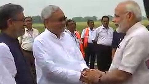 ಪೂರ್ನಿಯಾ (ಬಿಹಾರ): ಪ್ರಧಾನಮಂತ್ರಿ ನರೇಂದ್ರ ಮೋದಿಯವರು ಬಿಹಾರ ರಾಜ್ಯದ ಪ್ರವಾಹ ಪೀಡಿದ ಪ್ರದೇಶಗಳ ವೈಮಾನಿಕ ಸಮೀಕ್ಷೆ ಹಾಗೂ ಪರಿಹಾರ ಕಾರ್ಯಗಳ ಪರಾಮರ್ಶೆಗಾಗಿ ಶನಿವಾರ ಬಿಹಾರಕ್ಕೆ ಭೇಟಿ ನೀಡಿದ್ದಾರೆ.