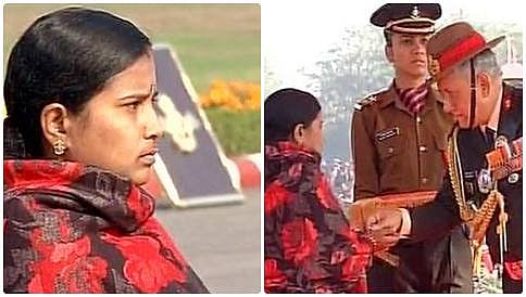 ಸೇನಾ ಮುಖ್ಯಸ್ಥ ಜನರಲ್ ಬಿಪಿನ್ ರಾವತ್ ಅವರಿಂದ ಲ್ಯಾನ್ಸ್ ನಾಯ್ಕ್ ಹನುಮಂತಪ್ಪ ಅವರ ಪತ್ನಿ ಮಹಾದೇವಿ ಸೇನಾ ಪದಕ ಪಡೆದ ಸಂದರ್ಭ.