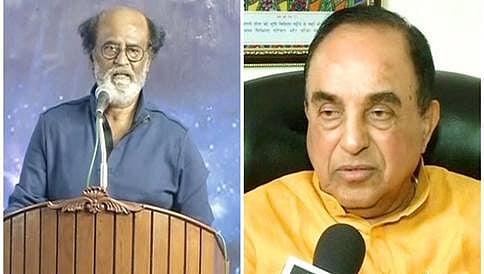 ರಜನಿಕಾಂತ್, ಬಲ ಚಿತ್ರದಲ್ಲಿ ಸುಬ್ರಹ್ಮಣ್ಯನ್ ಸ್ವಾಮಿ