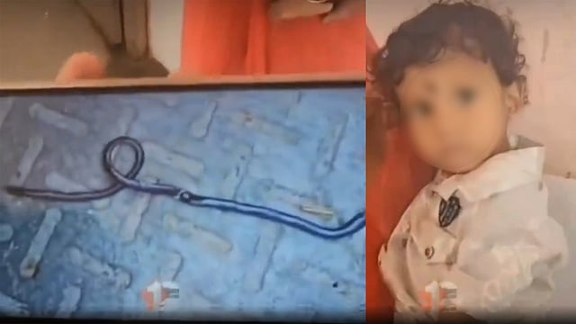ವಿಡಿಯೋದಲ್ಲಿ ವ್ಯಕ್ತಿಯೊಬ್ಬ ಮಗುವಿನ ಬಾಯಿಯನ್ನು ತೆರೆಯುವಂತೆ ಪ್ರಯತ್ನಿಸಿದ್ದು, ಸತ್ತ ಹಾವಿನ ಚಿತ್ರವನ್ನೂ ವಿಡಿಯೋದಲ್ಲಿ ತೋರಿಸಲಾಗಿದೆ.