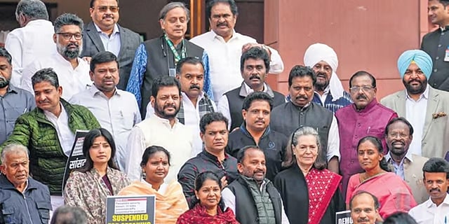 ಒಟ್ಟು 146 ಪ್ರತಿಪಕ್ಷ ಸಂಸದರ ಪೈಕಿ 132 ಸಂಸದರನ್ನು ಅಧಿವೇಶನದ ಉಳಿದ ಅವಧಿಗೆ ಅಮಾನತುಗೊಳಿಸಲಾಗಿತ್ತು. ಉಳಿದ 14 ಸಂಸದರನ್ನು ಹಕ್ಕುಬಾಧ್ಯತಾ ಸಮಿತಿಗಳು ನಿರ್ಧರಿಸುವವರೆಗೆ ಅಮಾನತುಗೊಳಿಸಲಾಗಿತ್ತು.