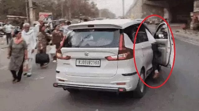 ಈ ಘಟನೆಗೆ ಸಂಬಂಧಿಸಿದ ವಿಡಿಯೋವೊಂದು ಹೊರಬಿದ್ದಿದ್ದು, ಚಾಲಕ ಕಾರನ್ನು ಚಲಾಯಿಸಿಕೊಂಡು ಹೋಗುತ್ತಿರುವುದು ಕಂಡು ಬರುತ್ತಿದೆ. ಚಾಲಕನ ಸೀಟಿನ ಡೋರ್ ತೆರೆದಿದ್ದು, ಟ್ರಾಫಿಕ್ ಪೊಲೀಸ್ ಎಸ್ಐ ಚಾಲಕನನ್ನು ನಿಯಂತ್ರಿಸುತ್ತಿರುವುದು ಕಂಡು ಬಂದಿದೆ. ಆತ ತನ್ನ ಪ್ರಾಣವನ್ನು ಪಣಕ್ಕಿಟ್ಟು ಕಾರನ್ನು ನಿಲ್ಲಿಸಲು ಪ್ರಯತ್ನಿಸುತ್ತಾನೆ. ಈ ವೇಳೆ ಕಾರು ಫುಟ್ ಪಾತ್ ಮೇಲೆ ಹೋಗುತ್ತದೆ. ಈ ಸಮಯದಲ್ಲಿ ದೊಡ್ಡ ಅಪಘಾತ ಸಂಭವಿಸಬಹುದಾಗಿತ್ತು. ಆದರೆ ಟ್ರಾಫಿಕ್ ಪೊಲೀಸರು ಅಂತಿಮವಾಗಿ ಚಾಲಕನನ್ನು ನಿಯಂತ್ರಿಸಿ ಕಾರನ್ನು ನಿಲ್ಲಿಸುತ್ತಾರೆ. ನಂತರ ಚಾಲಕನನ್ನು ಕಾರಿನಿಂದ ಕೆಳಗಿಳಿಸಲಾಯಿತು. ಈ ಕಾರು ರಾಜಸ್ಥಾನದ್ದು ಎನ್ನಲಾಗಿದೆ.
