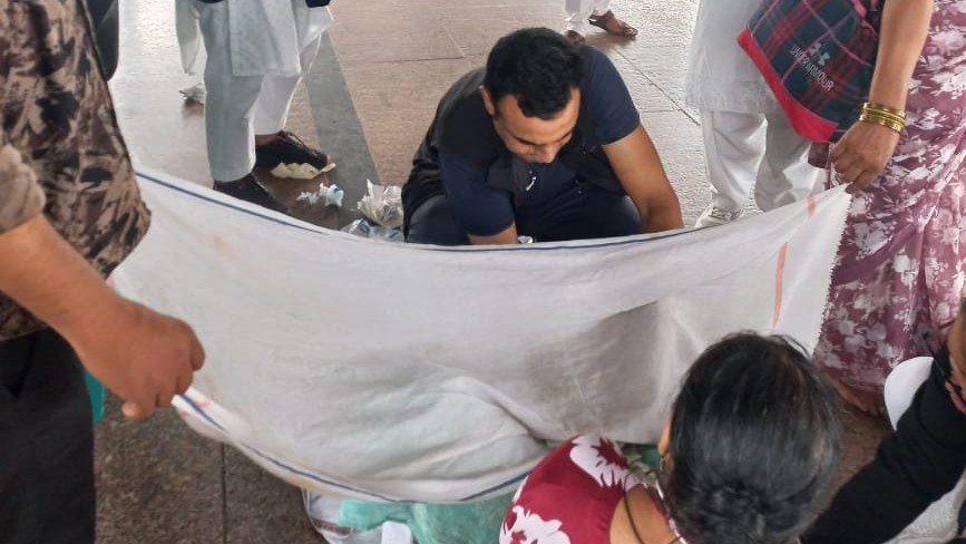 ಮೇಜರ್ ಡಾ.ರೋಹಿತ್ ಬಚ್ವಾಲಾ (31) ಅವರು ರೈಲಿಗಾಗಿ ಕಾಯುತ್ತಿದ್ದರು. ತುಂಬು ಗರ್ಭಿಣಿಯನ್ನು ಕಂಡು ಸಹಾಯ ಮಾಡಲು ಮುಂದಾದ ಅವರು ರೈಲ್ವೆ ಸಿಬ್ಬಂದಿಯ ನೆರವಿನೊಂದಿಗೆ ಹೇರ್ ಕ್ಲಿಪ್, ಪಾಕೆಟ್ ಚಾಕು ಬಳಸಿ ಹೆರಿಗೆ ಮಾಡಿಸಿದರು ಎಂದು ಸಾರ್ವಜನಿಕ ಸಂಪರ್ಕಾಧಿಕಾರಿ ಮನೋಜ್ ಕುಮಾರ್ ಸಿಂಗ್ ಮಾಧ್ಯಮಗಳಿಗೆ ತಿಳಿಸಿದ್ದಾರೆ.