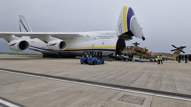 Apache Choppers ಸೇನೆಯ ಆಕ್ರಮಣ ಮತ್ತು ಕಾರ್ಯಾಚರಣೆಯ ಸಾಮರ್ಥ್ಯಗಳನ್ನು ಬೃಹತ್ ಪ್ರಮಾಣದಲ್ಲಿ ಹೆಚ್ಚಿಸುತ್ತದೆ.ಡೆಸರ್ಟ್ ಕ್ಯಾಮೊ ಬಣ್ಣದಲ್ಲಿರುವ ಅತ್ಯಾಧುನಿಕ ಚಾಪರ್ಗಳು ಅಮೆರಿಕದಿಂದ ಆಂಟೋನೋವ್ ಸಾರಿಗೆ ವಿಮಾನದಲ್ಲಿ ಆಗಮಿಸಿರುವುದು ದೃಶ್ಯಗಳಲ್ಲಿ ಸೆರೆಯಾಗಿದೆ.