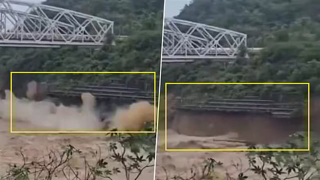 ರೈಲು ಸೇತುವೆ ದಾಟಿದ ಬಳಿಕ ಸೇತುವೆ ಅಡಿಪಾಯ ಕುಸಿದಿದ್ದರಿಂದ ಯಾವುದೇ ಅಪಾಯವಾಗಿಲ್ಲ. ಭಾರಿ ಪ್ರವಾಹದಿಂದಾಗಿ ಸೇತುವೆಯ ಅಡಿಪಾಯ ಕುಸಿಯುವ ಕೆಲವೇ ನಿಮಿಷಗಳ ಅಂತರದಲ್ಲಿ ಕುಸಿಯುವ ವಿಡಿಯೋ ಇದೀಗ ವೈರಲ್ ಆಗುತ್ತಿದೆ.