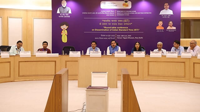 ನವದೆಹಲಿ: ದೇಶದಲ್ಲಿ ಭಾರತೀಯ ಪ್ರಮಾಣಿತ (IST) ಮತ್ತು ನಿಖರ ಸಮಯ ಪ್ರಸರಣಕ್ಕಾಗಿ ಕೇಂದ್ರ ಸರ್ಕಾರ ಮಹತ್ವದ ಹೆಜ್ಜೆ ಇರಿಸಿದ್ದು, 'ಒನ್ ನೇಷನ್ ಒನ್ ಟೈಂ' ಆರಂಭಿಸುವ ಕುರಿತು ಕೇಂದ್ರ ಗ್ರಾಹಕ ವ್ಯವಹಾರಗಳ ಸಚಿವ ಪ್ರಲ್ಹಾದ ಜೋಶಿ ಅವರ ನೇತೃತ್ವದಲ್ಲಿ ದುಂಡು ಮೇಜಿನ ಸಮ್ಮೇಳನ ನಡೆಸಿತು.