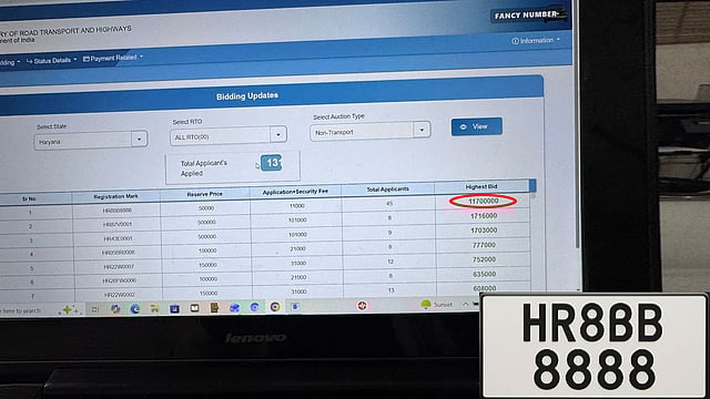 ಹೌದು.. ಹರಿಯಾಣದಲ್ಲಿ ವಾರಕ್ಕೊಮ್ಮೆ ವಿಐಪಿ ಅಥವಾ ಫ್ಯಾನ್ಸಿ ನಂಬರ್ ಪ್ಲೇಟ್ಗಳಿಗಾಗಿ ಆನ್ಲೈನ್ ಹರಾಜು ನಡೆಯುತ್ತದೆ. ಅದರಂತೆ ಬಿಡ್ಡರ್ಗಳು ತಮ್ಮ ಆಯ್ಕೆಯ ಸಂಖ್ಯೆಗೆ ಅರ್ಜಿ ಸಲ್ಲಿಸುತ್ತಾರೆ. ಹೆಚ್ಚು ಹಣ ಬಿಡ್ ಮಾಡುವವರಿಗೆ ಈ ನಂಬರ್ ನೀಡಲಾಗುತ್ತದೆ.