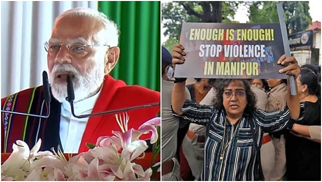 ಭಿತ್ತಪತ್ರ ಹಿಡಿದು ಪ್ರಧಾನಿ ವಿರುದ್ಧ ಘೋಷಣೆ ಕೂಗಿದ ಪ್ರತಿಭಟನಾಕಾರರು, ರಾಜ್ಯದಲ್ಲಿ ಶಾಂತಿ ಮತ್ತು ಸಹಜ ಪರಿಸ್ಥಿತಿಯನ್ನು ಪುನರ್ ಸ್ಥಾಪಿಸುವ ಉದ್ದೇಶದಿಂದ ಪ್ರಧಾನಿ ಭೇಟಿ ನೀಡಿಲ್ಲ ಎಂದು ಆರೋಪಿಸಿದರು. ಪ್ರಧಾನಿ ಕಾರ್ಯಕ್ರಮದ ಸ್ಥಳಕ್ಕೆ ಪ್ರತಿಭಟನಾಕಾರರು ತೆರಳದಂತೆ ಪೊಲೀಸ್ ಸಿಬ್ಬಂದಿ ತಡೆದರು.