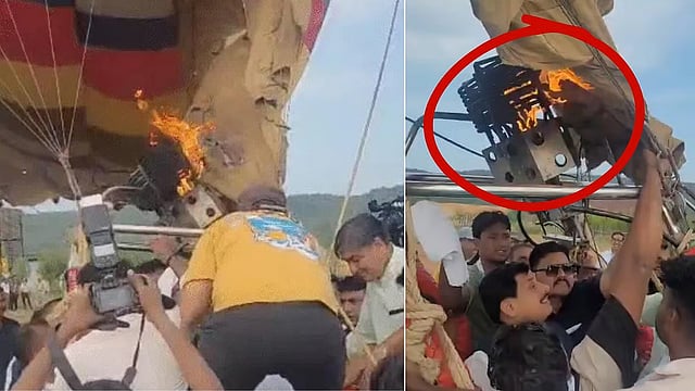 ಹಾಟ್ ಏರ್ ಬಲೂನ್ ಹಾರಾಟದಲ್ಲಿದ್ದಾಗ ಬೆಂಕಿ ಹೊತ್ತಿಕೊಂಡಿದ್ದರೆ ಭಾರೀ ಅನಾಹುತ ಸಂಭವಿಸುತ್ತಿತ್ತು. ಅದೃಷ್ಟವಶಾತ್ ನೆಲದಲ್ಲಿದ್ದಾಗ ಈ ಅವಘಡ ಸಂಭವಿಸಿದ್ದರಿಂದ ಭಾರೀ ಅನಾಹುತವೊಂದು ತಪ್ಪಿದಂತಾಗಿದೆ. ಈ ಘಟನೆಯ ವೀಡಿಯೋ ಸಾಮಾಜಿಕ ಜಾಲತಾಣದಲ್ಲಿ ವೈರಲ್ ಆಗಿದೆ.