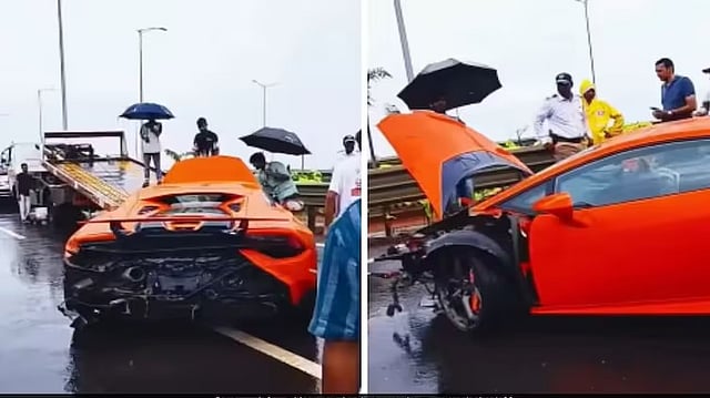 ಮುಂಬೈ: ಅತಿವೇಗವಾಗಿ ಬಂದ ಲ್ಯಾಂಬೋರ್ಘಿನಿ ಕಾರೊಂದು ಮುಂಬೈನ ಕರಾವಳಿ ರಸ್ತೆಯ ಡಿವೈಡರ್ಗೆ ಡಿಕ್ಕಿ ಹೊಡೆದಿದೆ.