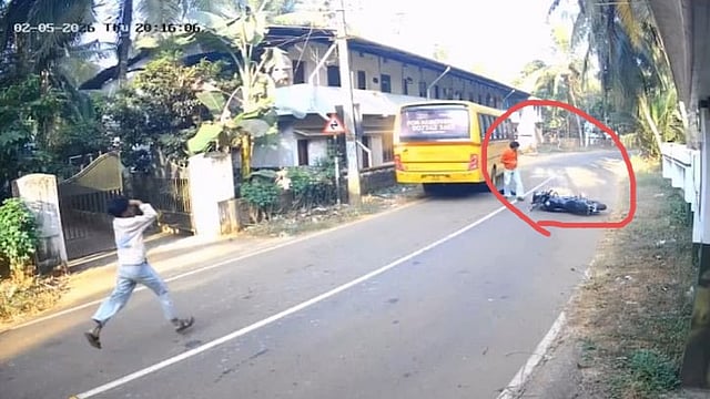 ಕೇರಳದ ಮಲಪ್ಪುರಂ ಜಿಲ್ಲೆಯಲ್ಲಿ ಭಾನುವಾರ ನಡೆದ ರಸ್ತೆ ಅಪಘಾತದಲ್ಲಿ ವಿದ್ಯಾರ್ಥಿಯೊಬ್ಬ ಪವಾಡಸದೃಶವಾಗಿ ಪಾರಾಗಿದ್ದಾನೆ. ಮಾರಕವಾಗಬಹುದಾಗಿದ್ದ ಈ ಅಪಘಾತದಲ್ಲಿ ಬೈಕ್ ಚಲಿಸುತ್ತಿದ್ದ ಯುವಕ ಕೂದಲೆಳೆ ಅಂತರದಲ್ಲಿ ಪಾರಾದ ವಿಡಿಯೋ ಸಿಸಿಟಿವಿಯಲ್ಲಿ ಸೆರೆಯಾಗಿದೆ.