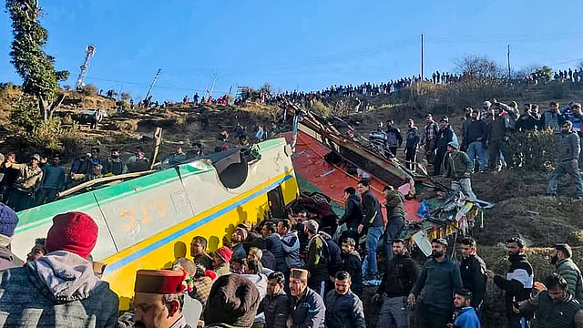 ಶಿಮ್ಲಾದಿಂದ ರಾಜ್ಗಢ ಮೂಲಕ ಕುಪ್ವಿಗೆ ಹೋಗುತ್ತಿದ್ದ ಬಸ್ ಹರಿಪುರ್ಧರ್ ಗ್ರಾಮದ ಬಳಿ ಚಾಲಕನ ನಿಯಂತ್ರ ತಪ್ಪಿ ರಸ್ತೆಯಿಂದ ಕಂದಕಕ್ಕೆ ಉರುಳಿ ಬಿದ್ದಿದೆ.