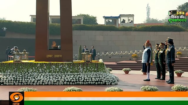 ಇಂದು ಬೆಳಗ್ಗೆ ಮೋದಿ ಅವರು ರಾಷ್ಟ್ರೀಯ ಯುದ್ಧ ಸ್ಮಾರಕಕ್ಕೆ ಭೇಟಿ ನೀಡಿ ಗೌರವ ಸಲ್ಲಿಸಿದರು. ಮಡಿದ ವೀರಯೋಧರಿಗೆ ಶ್ರದ್ಧಾಂಜಲಿ ಸಲ್ಲಿಸಿದ ಬಳಿಕ ಮೋದಿ ಮತ್ತು ಇತರ ಗಣ್ಯರು ಮೆರವಣಿಗೆಯನ್ನು ವೀಕ್ಷಿಸಲು ಕರ್ತವ್ಯ ಪಥದಲ್ಲಿನ ವೇದಿಕೆಗೆ ತೆರಳಿದರು.