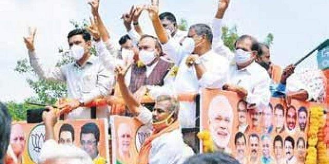 ಚುನಾವಣಾ ಸಮಯದಲ್ಲಿ ರ್ಯಾಲಿಗಳಿಂದ ಸೂಪರ್ ಸ್ಪ್ರೆಡರ್ ಆಗುತ್ತದೆ ಎಂದು ತಜ್ಞರು ಎಚ್ಚರಿಕೆ ನೀಡಿದ್ದರು ಕೂಡ ಯಾರು ನಿಯಮ ಪಾಲಿಸುತ್ತಿಲ್ಲ, ಆಡಳಿತಾರೂಢ ಬಿಜೆಪಿ ರಾಜ್ಯಾಧ್ಯಕ್ಷ ನಳಿನ್ ಕುಮಾರ್ , ಡಿಸಿಎಂ ಅಶ್ವತ್ಥ ನಾರಾಯಣ ಮತ್ತು ಲಕ್ಷ್ಮಣ ಸವದಿ, ಬಿವೈ ವಿಜಯೇಂದ್ರ, ಸಂಸದ ಜಿಎಸ್ ಬಸವರಾಜು, ತೇಜಸ್ವಿ ಸೂರ್ಯ, ಆರ್ ಅಶೋಕ್, ಕೆ ಸುಧಾಕರ್ ಮಾಧುಸ್ವಾಮಿ ಸೇರಿದಂತೆ ಎಲ್ಲಾ ನಾಯಕರು ಸಾಮೂಹಿಕ ರ್ಯಾಲಿ ಉದ್ದೇಶಿಸಿ ಮಾತನಾಡಿದ್ದಾರೆ.
