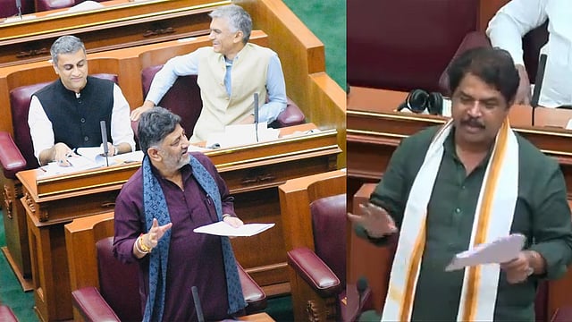 ಈ ವೇಳೆ ಮಧ್ಯಪ್ರವೇಶಿಸಿದ ಸಭಾಧ್ಯಕ್ಷ ಯು.ಟಿ.ಖಾದರ್ 'ವಿಪಕ್ಷ ನಾಯಕರು ನಿಮಗೆ 2-3 ಪ್ರಶ್ನೆ ಕೇಳಿದ್ದಾರೆ. ಆ ಪ್ರಶ್ನೆಗಳಿಗೆ ನೀವು ನಿಮ್ಮ ಕೊಠಡಿಯಲ್ಲಿ ಉತ್ತರ ಕೊಡಿ, ಸದನದಲ್ಲಿ ಕೊಡಬೇಡಿ ಎಂದು ಡಿಕೆಶಿಗೆ ಕಿವಿಮಾತು ಹೇಳಿದರು. ಈ ವೇಳೆ ಬಿಜೆಪಿ ಶಾಸಕ ಸಿ.ಸಿ.ಪಾಟೀಲ್ ಮಾತನಾಡಿ, ನಿಮ್ಮ ನೇತೃತ್ವದಲ್ಲಾದರೂ ಪಂಚಮಸಾಲಿ ಮೀಸಲಾತಿ ಸಿಗಲಿ ಎಂದು ಡಿಕೆಶಿಯವರನ್ನು ಛೇಡಿಸಿದರು.