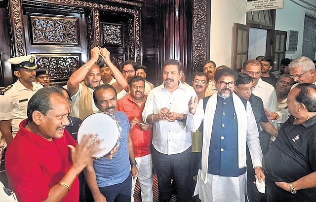 ಬೆಂಗಳೂರು: ಸದನದಲ್ಲಿ ಮುಡಾ ಹಗರಣದ ಚರ್ಚೆಗೆ ಅವಕಾಶ ನಿರಾಕರಣೆಯಿಂದ ಕೆರಳಿರುವ ಪ್ರತಿಪಕ್ಷಗಳಾದ ಬಿಜೆಪಿ ಹಾಗೂ ಜೆಡಿಎಸ್ ಶಾಸಕರು ಅಹೋರಾತ್ರಿ ಧರಣಿ ನಡೆಸುತ್ತಿದ್ದಾರೆ. ಕಲಾಪವನ್ನು ಗುರುವಾರಕ್ಕೆ ಮುಂದೂಡಿದ್ದರೂ ರಾತ್ರಿಯಿಡೀ ಸದನದಲ್ಲಿಯೇ ತಂಗಿರುವ ಶಾಸಕರು, ಭಿನ್ನ, ವಿಭಿನ್ನವಾಗಿ ಪ್ರತಿಭಟನೆ ನಡೆಸುವ ಮೂಲಕ ಗಮನ ಸೆಳೆದರು.