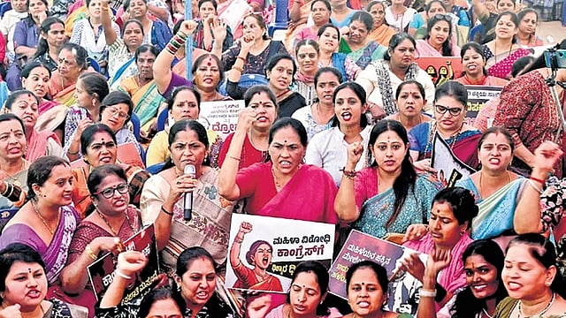 ಫ್ರೀಡಂ ಪಾರ್ಕ್ನಲ್ಲಿ ಬಿಜೆಪಿ ಮಹಿಳಾ ಕಾರ್ಯಕರ್ತರನ್ನು ಉದ್ದೇಶಿಸಿ ಮಾತನಾಡಿದ ಅವರು, ಮಹಿಳಾ ಮೀಸಲಾತಿ ವಿಧೇಯಕದ ವಿಚಾರವನ್ನು ಉಲ್ಲೇಖಿಸಿ ಈ ಮಹತ್ವದ ಕಾನೂನು ಪ್ರಕ್ರಿಯೆಗೆ ಅಡ್ಡಿಪಡಿಸಲು ತಪ್ಪು ಮಾಹಿತಿಯನ್ನು ಹರಡುತ್ತಿದ್ದಾರೆಂದು ಕಿಡಿಕಾರಿದರು.