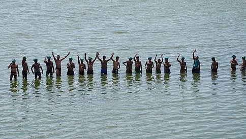 ಕಾವೇರಿ ನದಿಯಲ್ಲಿ ತಮಿಳು ರೈತರ ಪ್ರತಿಭಟನೆ