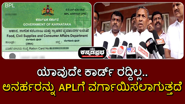 ಯಾವುದೇ ಕಾರ್ಡ್ ಗಳನ್ನು ರದ್ದು ಮಾಡುವುದಿಲ್ಲ ಎಂದು ಸ್ಪಷ್ಟನೆ ನೀಡಿರುವ ಸಚಿವ KH Muniyappa ಅನರ್ಹರನ್ನು APLಗೆ ವರ್ಗಾಯಿಸಲಾಗುತ್ತದೆ ಎಂದಿದ್ದಾರೆ. ಸದ್ಯ ಜನಸಂಖ್ಯೆಯ ಸುಮಾರು 80 ಪ್ರತಿಶತ ಜನರು ಬಿಪಿಎಲ್ ಕಾರ್ಡ್ಗಳನ್ನು ಹೊಂದಿದ್ದು, ಈ ಪೈಕಿ ಕೆಲವು ಅನರ್ಹ ವ್ಯಕ್ತಿಗಳು ಬಿಪಿಎಲ್ ಕಾರ್ಡ್ಗಳನ್ನು ಹೊಂದಿದ್ದಾರೆ. ಅನರ್ಹ ಬಿಪಿಎಲ್ ಕಾರ್ಡುದಾರರನ್ನು ರದ್ದು ಮಾಡಿಲ್ಲ ಬದಲಾಗಿ ಎಪಿಎಲ್ ವರ್ಗಕ್ಕೆ ವರ್ಗಾಯಿಸಲಾಗಿದೆ ಎಂದರು.