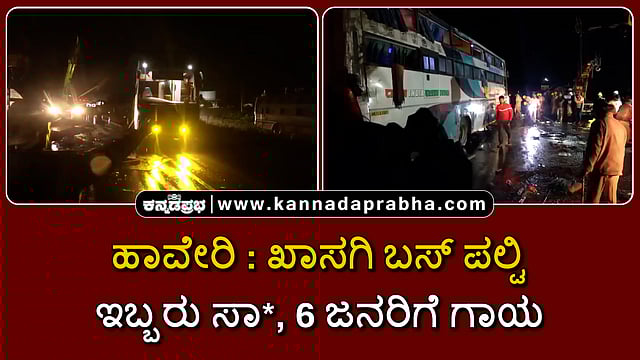 ಖಾಸಗಿ ಬಸ್ ಪಲ್ಟಿಯಾಗಿ ಸ್ಥಳದಲ್ಲೇ ಇಬ್ಬರು ಸಾವನ್ನಪ್ಪಿ 6 ಜನ ಗಂಭೀರವಾಗಿ ಗಾಯಗೊಂಡ ಘಟನೆ ಹಾವೇರಿ ಜಿಲ್ಲೆಯ ಬ್ಯಾಡಗಿ ತಾಲೂಕಿನ ಮೋಟೆಬೆನ್ನೂರಿನಲ್ಲಿ ನಡೆದಿದೆ.