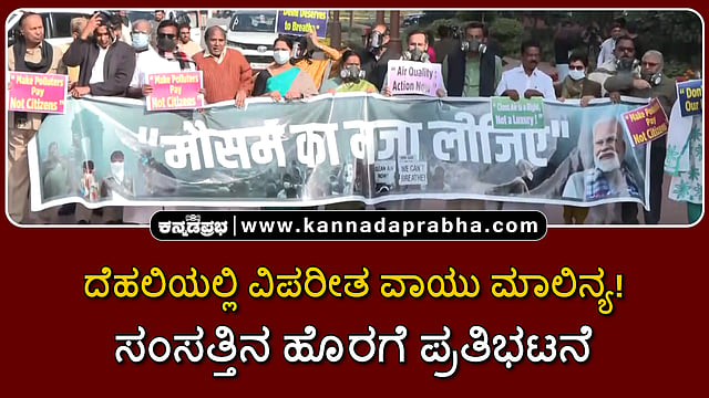 ಘೋಷಣೆಗಳನ್ನು ಕೂಗುತ್ತಾ, ನಾಯಕರು ವಾಯು ಮಾಲಿನ್ಯದ ಕುರಿತು ಸಂಸತ್ತಿನ ಚರ್ಚೆಗೆ ಒತ್ತಾಯಿಸಿದರು. ವಿಡಿಯೋ ಇಲ್ಲಿದೆ ನೋಡಿ.