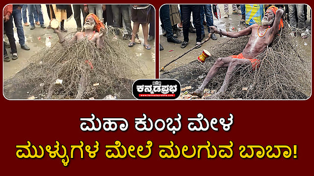 Watch | ಮಹಾ ಕುಂಭ ಮೇಳ: ಮುಳ್ಳುಗಳ ಮೇಲೆ ಮಲಗುವ ಬಾಬಾ