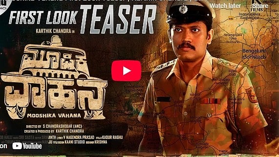 ನಟ ಕಾರ್ತಿಕ ಚಂದ್ರ ಅಭಿನಯದ ಮೂಷಿಕ ವಾಹನ ಚಿತ್ರದ ಫಸ್ಟ್ ಲುಕ್ ಟೀಸರ್ ಬಿಡುಗಡೆಯಾಗಿದೆ. ಚಿತ್ರವನ್ನು ಚಂದ್ರಶೇಖರ್ ನಿರ್ದೇಶಿದ್ದಾರೆ.