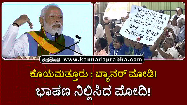 ಕೊಯಮತ್ತೂರಿನಲ್ಲಿ ನಡೆದ ಕಾರ್ಯಕ್ರಮದಲ್ಲಿ ಈ ಬ್ಯಾನರ್ ನೋಡಿದ ಪ್ರಧಾನಿ ಮೋದಿ ತಮ್ಮ ಭಾಷಣವನ್ನು ನಿಲ್ಲಿಸಿದರು. ವಿಡಿಯೋ ಇಲ್ಲಿದೆ ನೋಡಿ.