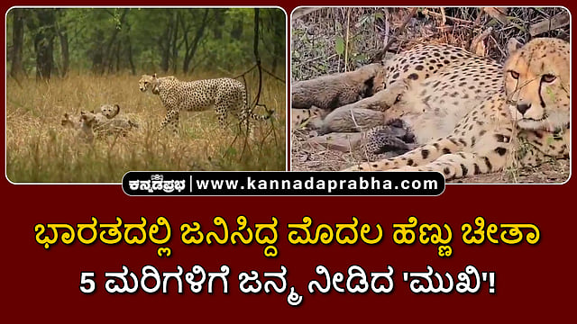 ಭಾರತದಲ್ಲಿ ಜನಿಸಿದ ‘ಮುಖಿ’ ಹೆಸರಿನ ಚೀತಾ, ಕುನೊ ರಾಷ್ಟ್ರೀಯ ಉದ್ಯಾನದಲ್ಲಿ, 5 ಮರಿಗಳಿಗೆ ಗುರುವಾರ ಜನ್ಮ ನೀಡಿದ್ದು ಈ ಮುಖಿ ಚೀತಾ ನಮೀಬಿಯಾದಿಂದ ಭಾರತಕ್ಕೆ ತರಲಾಗಿದ್ದ ಚೀತಾಕ್ಕೆ ಜನಿಸಿತ್ತು.