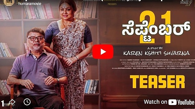 ನಟಿ ಪ್ರಿಯಾಂಕಾ ಉಪೇಂದ್ರ ಮತ್ತು ಪ್ರವೀಣ್ ಸಿಂಗ್ ಅಭಿನಯದ ಸೆಪ್ಟೆಂಬರ್ 21 ಚಿತ್ರದ ಟೀಸರ್ ಬಿಡುಗಡೆಯಾಗಿದೆ..Follow KannadaPrabha channel on WhatsApp Download the KannadaPrabha News app to follow the latest news updates Subscribe and Receive exclusive content and updates on your favorite topics Subscribe to KannadaPrabha YouTube Channel and watch Videos