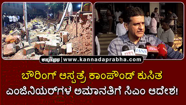 ವಿಧಾನಸೌಧದಲ್ಲಿ ಗುರುವಾರ ನಡೆದ ಉನ್ನತ ಮಟ್ಟದ ಪರಿಶೀಲನಾ ಸಭೆಯಲ್ಲಿ, ಮುಖ್ಯಮಂತ್ರಿ ಸಿದ್ದರಾಮಯ್ಯ ಅವರು ಬೌರಿಂಗ್ ಮತ್ತು ಲೇಡಿ ಕರ್ಜನ್ ಆಸ್ಪತ್ರೆಯ ಗೋಡೆ ಕುಸಿತ ಘಟನೆಗೆ ಸಂಬಂಧಿಸಿದಂತೆ ಕಾರ್ಯನಿರ್ವಾಹಕ ಎಂಜಿನಿಯರ್ರನ್ನು ತಕ್ಷಣ ಅಮಾನತುಗೊಳಿಸುವಂತೆ ಆದೇಶಿಸಿದ್ದಾರೆ.