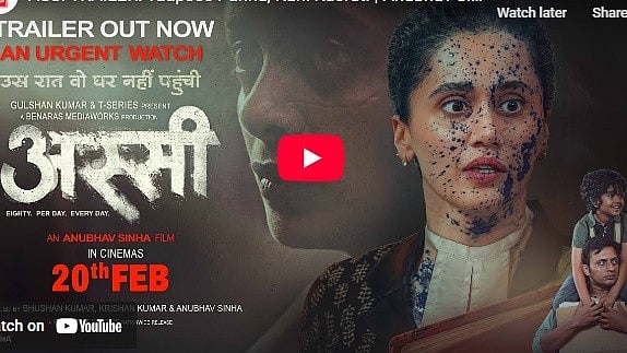 ನಟಿ ತಾಪ್ಸಿ ಪನ್ನು ಅಭಿನಯದ ಅಸ್ಸಿ ಚಿತ್ರದ ಟ್ರೈಲರ್ ಬಿಡುಗಡೆಯಾಗಿದೆ.
