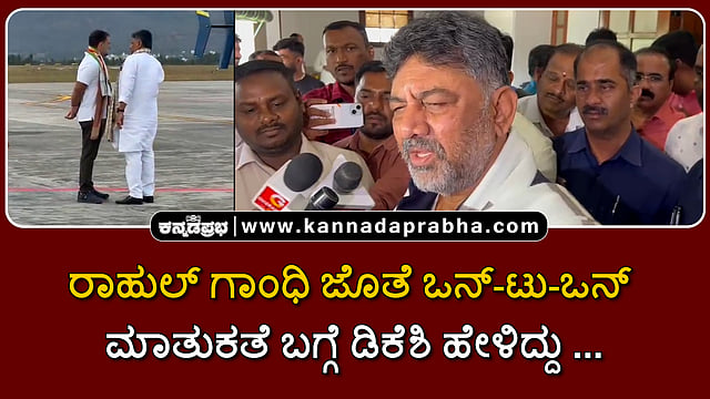 ಈ ವೇಳೆ ಡಿಕೆ ಶಿವಕುಮಾರ್ ಅವರು ರಾಹುಲ್ ಗಾಂಧಿಯನ್ನು ಸೈಡಿಗೆ ಕರೆದುಕೊಂಡು ಹೋಗಿ ಮಾತನಾಡಿದ್ದಾರೆ.