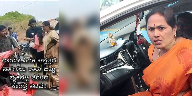 ಅಪಘಾತದ ಗಾಯಾಳುಗಳ ಸಾಗಿಸಲು ಕಾರು ಬಿಟ್ಟು ಬೈಕಿನಲ್ಲಿ ತೆರಳಿದ ಕೇಂದ್ರ ಸಚಿವೆ!!