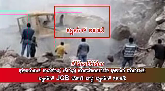 ಭೂಕುಸಿತ ಅವಶೇಷ ತೆರವು ಮಾಡುವಾಗಲೇ ಭೀಕರ ದುರಂತ: ಬೃಹತ್ ಜೆಸಿಬಿ ಮೇಲೆ ಬಿದ್ದ ಬೃಹತ್ ಬಂಡೆ; ವಿಡಿಯೋ ವೈರಲ್
