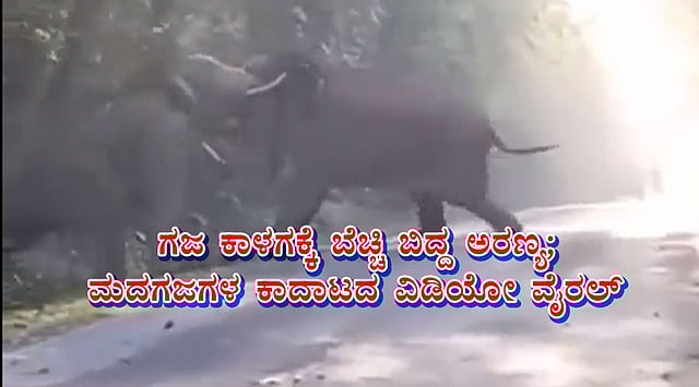 ಗಜ ಕಾಳಗಕ್ಕೆ ಬೆಚ್ಚಿ ಬಿದ್ದ ಅರಣ್ಯ; ಮದಗಜಗಳ ಕಾದಾಟದ ವಿಡಿಯೋ ವೈರಲ್