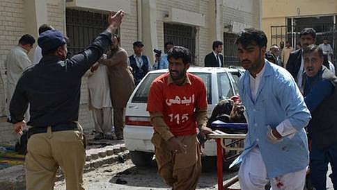 ಕ್ವೆಟ್ಟಾದಲ್ಲಿ ಕಳೆದ ಸೋಮವಾರ ಬಾಂಬ್ ಸ್ಫೋಟದಲ್ಲಿ ಗಾಯಗೊಂಡ ವ್ಯಕ್ತಿಯನ್ನು ಆಸ್ಪತ್ರೆಗೆ ಕರೆದೊಯ್ಯುತ್ತಿರುವ ಸ್ವಯಂ ಸೇವಕರು.