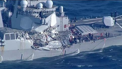 ಸಿಂಗಾಪುರ: ಯುಎಸ್ಎಸ್ ಫಿಟ್ಜ್ ಗರಾಲ್ಡ್ ಬಳಿಕ ಅಮೆರಿಕದ ಮತ್ತೊಂದು ಯುದ್ಧ ನೌಕೆ ಅಪಘಾತಗೀಡಾಗಿದ್ದು, ಸಿಂಗಾಪುರದಲ್ಲಿ ಯುಎಸ್ಎಸ್ ಜಾನ್ ಎಸ್ ಮೆಕೇನ್ ನೌಕೆ ಆಯಿಲ್ ಟ್ಯಾಂಕರ್ ಗೆ ಢಿಕ್ಕಿ ಹೊಡೆದಿದೆ ಎಂದು ತಿಳಿದುಬಂದಿದೆ.
