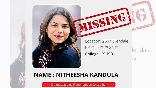 ಕ್ಯಾಲಿಫೋರ್ನಿಯಾ ಸ್ಟೇಟ್ ಯೂನಿವರ್ಸಿಟಿಯ ಸ್ಯಾನ್ ಬರ್ನಾರ್ಡಿನೊ (CSUSB) ವಿದ್ಯಾರ್ಥಿನಿ ನಿತೀಶಾ ಕಂದುಲಾ ಮೇ 28 ರಂದು ನಾಪತ್ತೆಯಾಗಿದ್ದಾರೆ ಎಂದು ಪೊಲೀಸರು ತಿಳಿಸಿದ್ದಾರೆ. ಕೊನೆಯದಾಗಿ ಲಾಸ್ ಏಂಜಲೀಸ್ನಲ್ಲಿ ಆಕೆ ಕಾಣಿಸಿಕೊಂಡಿದ್ದಳು ಮತ್ತು ಮೇ 30 ರಂದು ನಾಪತ್ತೆಯಾಗಿದ್ದಾಳೆ ಎಂದು ವರದಿಯಾಗಿದೆ ಎಂದು CSUSB ನ ಪೊಲೀಸ್ ಮುಖ್ಯಸ್ಥ ಜಾನ್ ಗುಟ್ಟಿರೆಜ್ ಭಾನುವಾರ ಎಕ್ಸ್ನಲ್ಲಿ ಪೋಸ್ಟ್ನಲ್ಲಿ ತಿಳಿಸಿದ್ದಾರೆ.