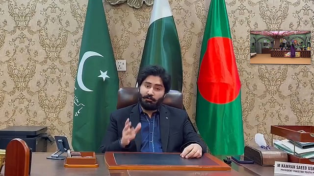 ಪಾಕಿಸ್ತಾನದ ಪ್ರಧಾನಿ ಶೆಹಬಾಜ್ ಷರೀಫ್ ಅವರ ಪಕ್ಷವಾದ ಪಾಕಿಸ್ತಾನ ಮುಸ್ಲಿಂ ಲೀಗ್ (ಪಿಎಂಎಲ್)ನ ಯುವ ವಿಭಾಗದ ನಾಯಕ ಕಮ್ರಾನ್ ಸಯೀದ್ ಉಸ್ಮಾನಿ ಇಂದು ಭಾರತಕ್ಕೆ ಬೆದರಿಕೆ ಹಾಕಿದ್ದು, ಬಾಂಗ್ಲಾದೇಶದ ಮೇಲೆ ಭಾರತದಿಂದ ಯಾವುದೇ ದಾಳಿ ನಡೆದರೆ ಪಾಕಿಸ್ತಾನದ ಸೈನ್ಯ ಮತ್ತು ಕ್ಷಿಪಣಿಗಳು ಅದಕ್ಕೆ ಪ್ರತಿಕ್ರಿಯಿಸುತ್ತವೆ ಎಂದು ಹೇಳಿದ್ದಾರೆ.