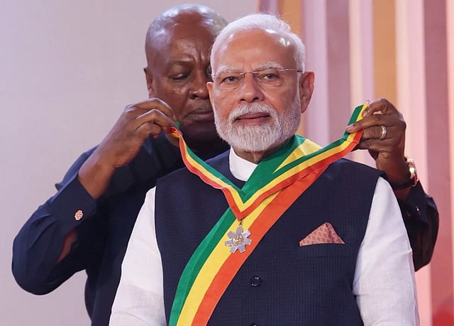 ಘಾನಾ ಅಧ್ಯಕ್ಷ ಜಾನ್ ಡ್ರಾಮಣಿ ಮಹಾಮಾ ಅವರಿಂದ ಮೋದಿ ಬುಧವಾರ ಪ್ರಶಸ್ತಿ ಸ್ವೀಕರಿಸಿದರು. ಈ ಪ್ರಶಸ್ತಿಯು ತನಗೆ ಅತ್ಯಂತ ಹೆಮ್ಮೆ ಮತ್ತು ಗೌರವದ ವಿಷಯವಾಗಿದೆ ಎಂದು ಮೋದಿ ಅವರು ಸಾಮಾಜಿಕ ಜಾಲತಾಣ ಎಕ್ಸ್ ನಲ್ಲಿ ಬರೆದುಕೊಂಡಿದ್ದಾರೆ.