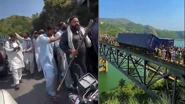 ಅಂತೆಯೇ ಸಿನಿಮೀಯ ದೃಶ್ಯದ ರೀತಿಯಲ್ಲಿ ಪಿಒಕೆಯಲ್ಲಿರುವ ದಡಿಯಾಲ್ನ ಪಾಲಕ್ ಸೇತುವೆಯಲ್ಲಿ ಕಾಶ್ಮೀರಿ ಪ್ರತಿಭಟನಾಕಾರರು ಪಾಕಿಸ್ತಾನಿ ಪಂಜಾಬಿ ಸೇನೆಯ 3 ಬೃಹತ್ ಕಂಟೇನರ್ಗಳನ್ನು ತಡೆ ಹಿಡಿದಿದ್ದಾರೆ. ಮಾತ್ರವಲ್ಲದೇ ಈ ಪೈಕಿ ಒಂದು ಟ್ರಂಕ್ ಅನ್ನು ಸ್ಥಳೀಯರು ಬರಿ ಕೈಗಳಿಂದಲೇ ಅವುಗಳನ್ನು ಸೇತುವೆಯಿಂದ ನದಿಗೆ ತಳ್ಳಿದ್ದಾರೆ. ಆಕ್ರಮಿತ ಕಾಶ್ಮೀರದಾದ್ಯಂತ ದಂಗೆ ವೇಗವಾಗಿ ಹರಡುತ್ತಿದ್ದು, ಸೇನಾ ಕಂಟೇನರ್ಗಳು ಜನರ ಕೋಪಕ್ಕೆ ತುತ್ತಾಗಿವೆ.