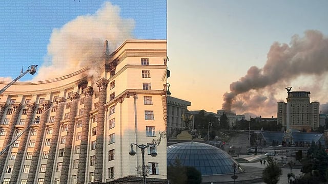 ರಷ್ಯಾದ ಕ್ಷಿಪಣಿ ದಾಳಿ ನಂತರ ಉಕ್ರೇನ್ ರಾಜಧಾನಿ ಕೈವ್ನಲ್ಲಿನ ಆಡಳಿತ ಕಟ್ಟಡದ ಮೇಲ್ಭಾಗದಲ್ಲಿ ಬೆಂಕಿ ಕಾಣಿಸಿಕೊಂಡಿದೆ ಎಂದು ಆ ರಾಷ್ಟ್ರದ ಮಿಲಿಟರಿ ಆಡಳಿತದ ಮುಖ್ಯಸ್ಥ ತೈಮೂರ್ ಟ್ಕಾಚೆಂಕೊ ಭಾನುವಾರ ಸಾಮಾಜಿಕ ಮಾಧ್ಯಮದ ಮೂಲಕ ತಿಳಿಸಿದ್ದಾರೆ. ಉಕ್ರೇನ್ ಸರ್ಕಾರದ ಪ್ರಮುಖ ಕಟ್ಟಡದಿಂದ ದಟ್ಟವಾದ ಹೊಗೆ ಬರುತ್ತಿರುವುದನ್ನು ಹಲವು ಮಂದಿ ನೋಡಿದ್ದಾರೆ ಎಂದು ರಾಯಿಟರ್ಸ್ ವರದಿ ಮಾಡಿದೆ.