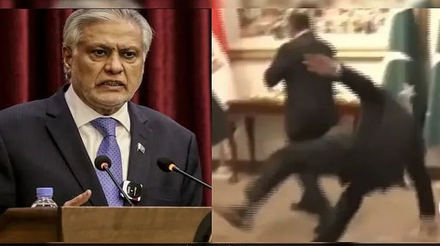 ಇಸ್ಲಾಮಾಬಾದ್: ಪಾಕಿಸ್ತಾನ ಉಪ ಪ್ರಧಾನಿ ಮತ್ತು ವಿದೇಶಾಂಗ ಸಚಿವ ಇಶಾಕ್ ದಾರ್ ಈಜಿಪ್ಟ್ ವಿದೇಶಾಂಗ ಸಚಿವರನ್ನು ಸ್ವಾಗತಿಸುವಾಗ ಕಾಲು ಜಾರಿ ಬಿದ್ದಿರುವ ವಿಡಿಯೋ ವೈರಲ್ ಆಗಿದೆ.